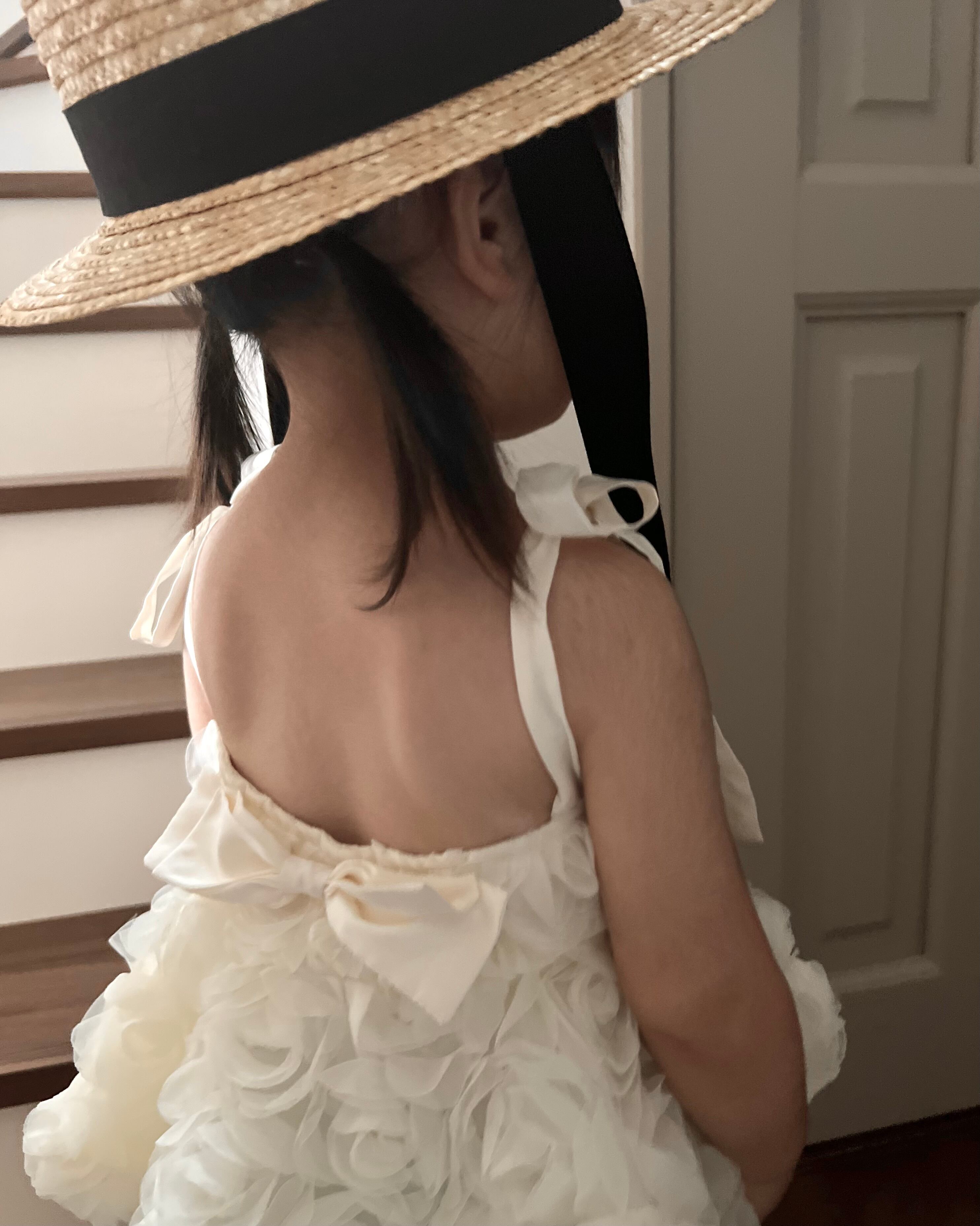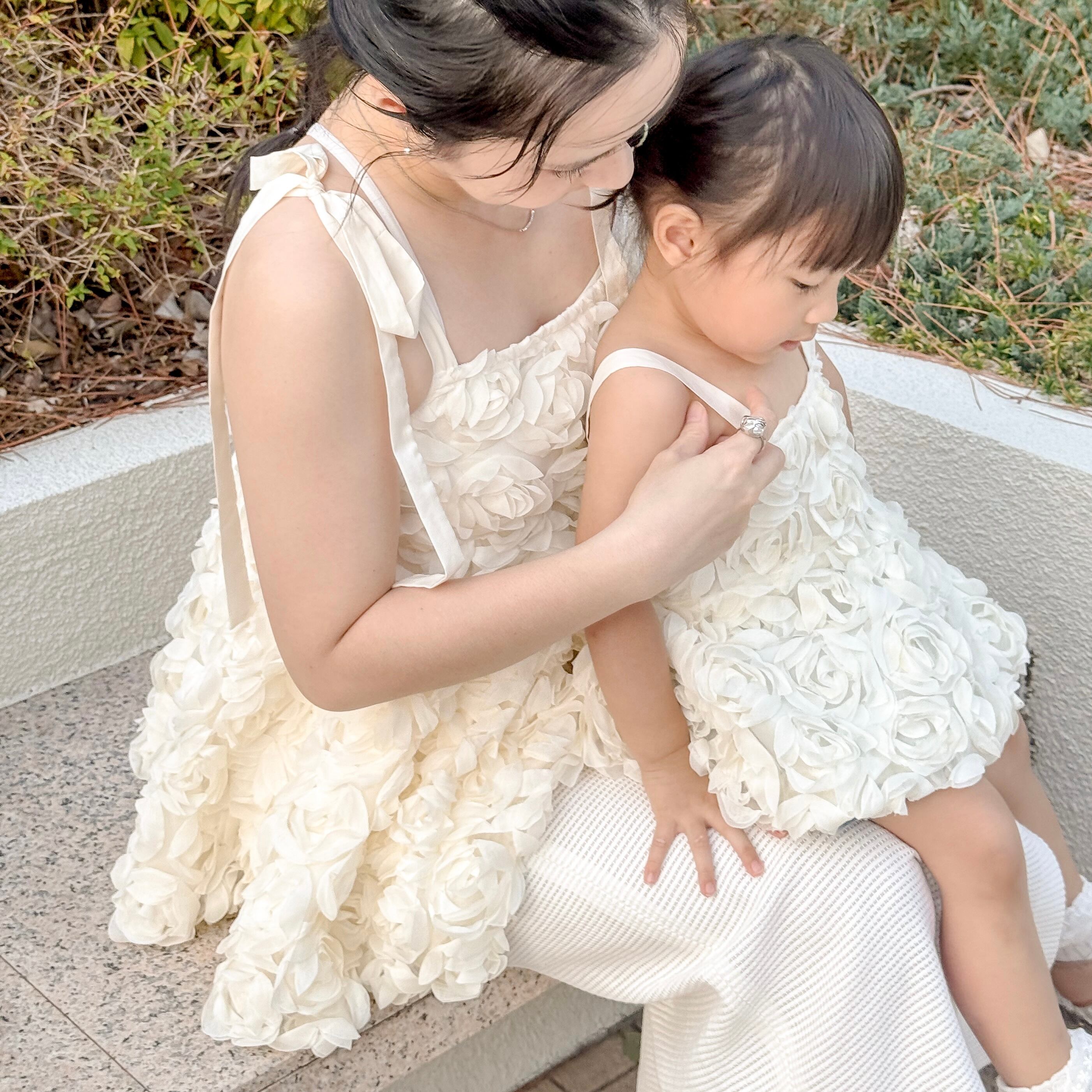 愛らしいローズモチーフが特徴的なこのキャミソールは、親子で楽しめるコーディネートに最適です。親子で揃えておしゃれを楽しむことができ、特別な思い出づくりに役立つアイテムです。