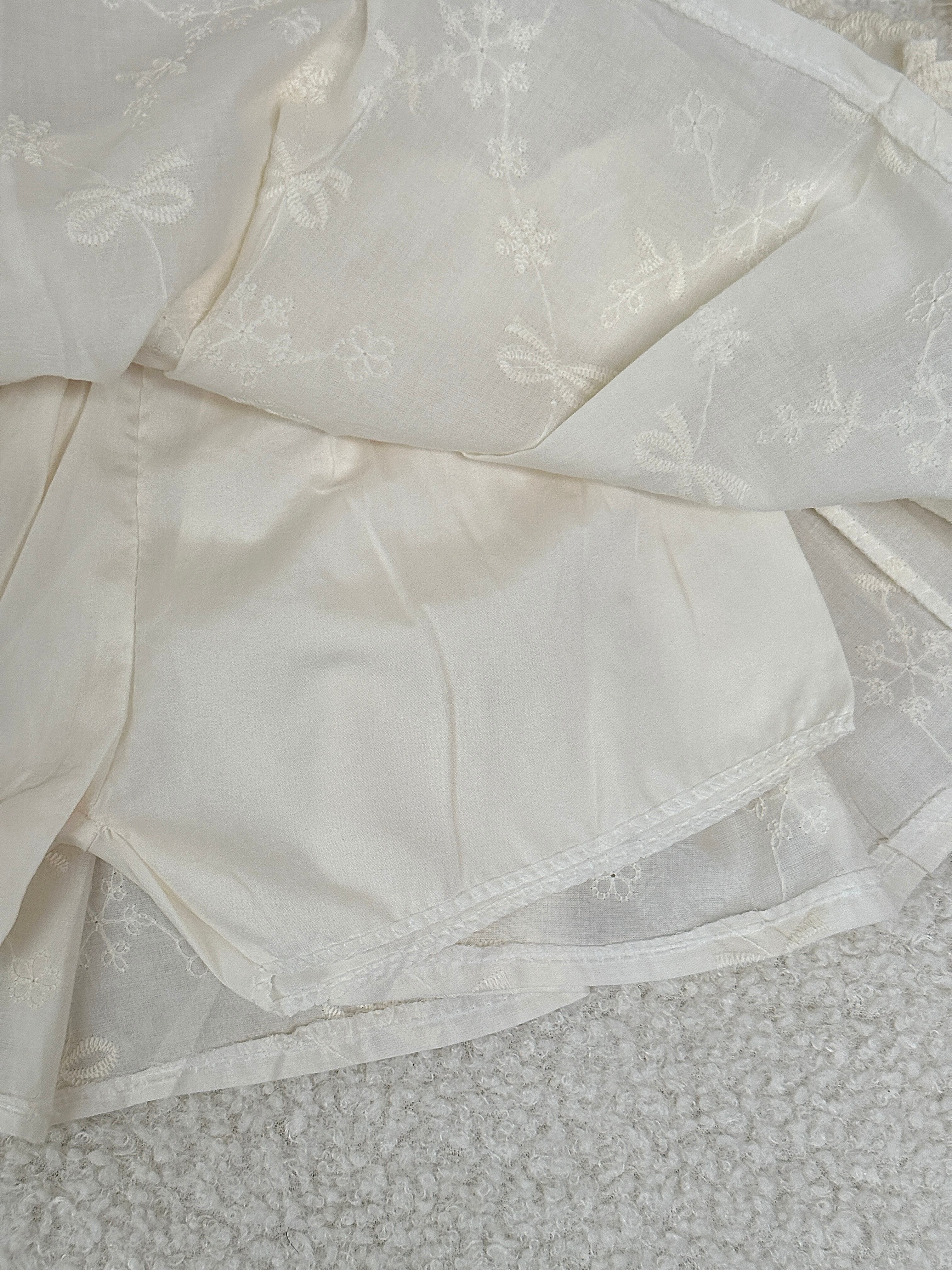 - 刺繍生地のリボントップス