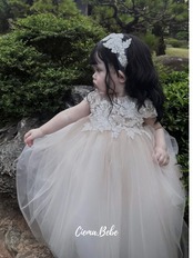 ハンドメイドチュールドレス 花柄刺繍スパンコール 80cm/90cm/100cm/110/120cm