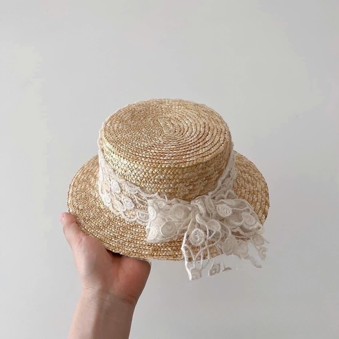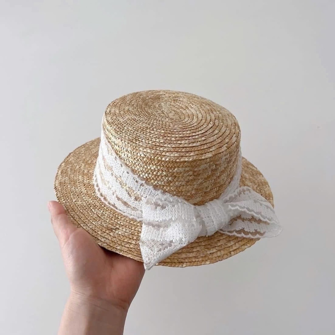 【即納】lace ribbon straw hat 子供用 帽子 キャップ キッズ 麦わら帽子 ハット