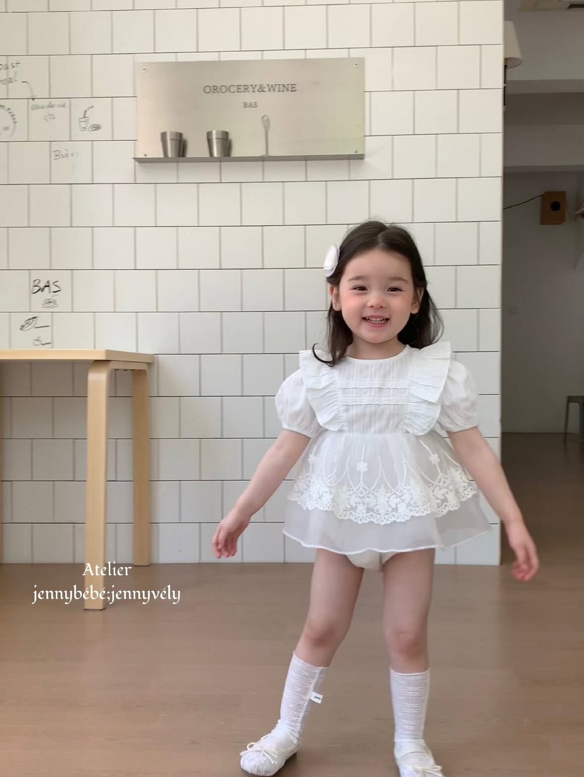 柔らかな生地が肌に優しく、ベビーが快適に過ごせるよう配慮されています。さりげないチュールのフリルが、さらにおしゃれ感を引き立てます。