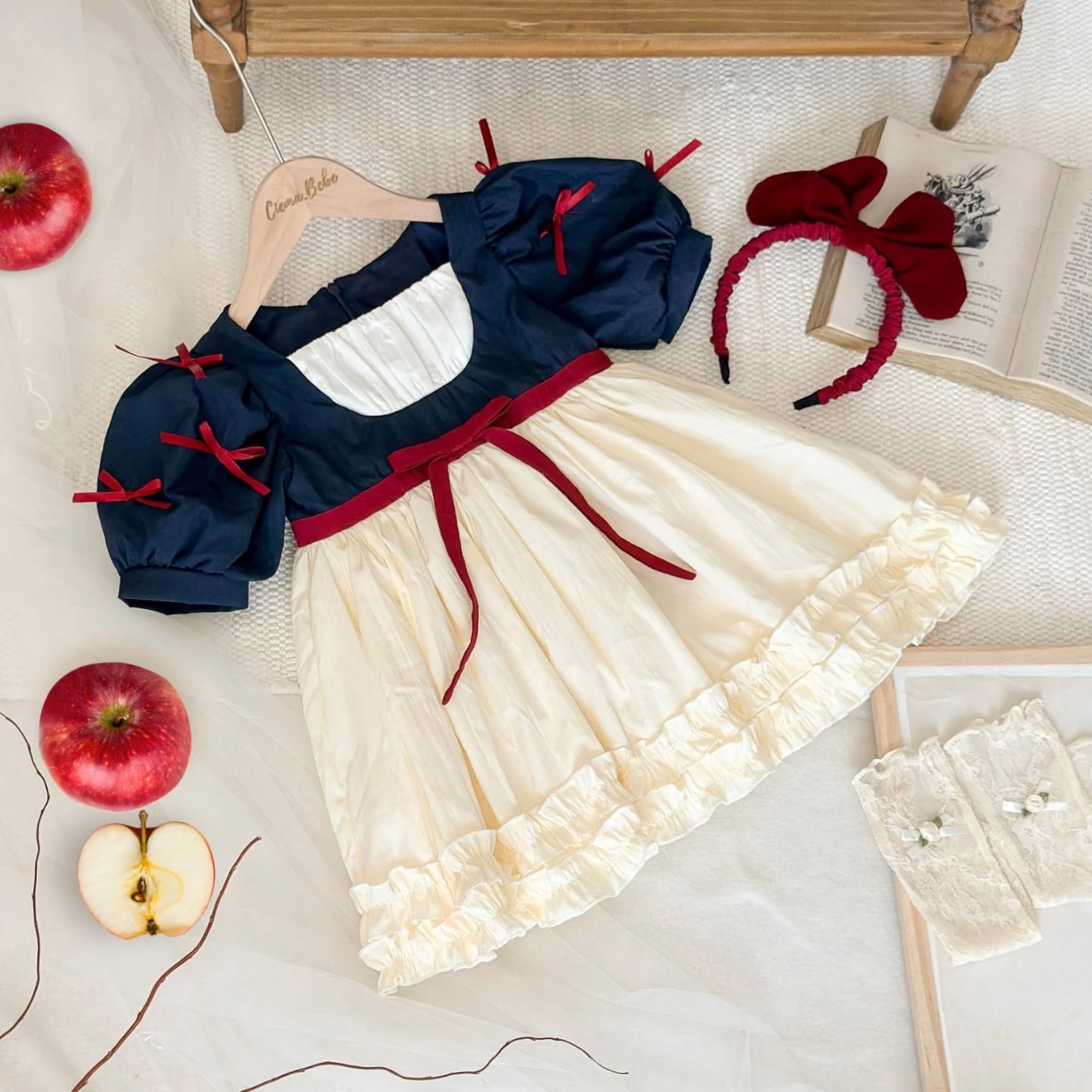 snow white dress 白雪姫風ドレスは、特別な日を彩るための素晴らしい一着です!柔らかな生地で作られたこのドレスは、秋冬のハロウィンやクリスマスにぴったり。かわいらしい姫風デザインが、どんな子どもたちも絵本の中のプリンセスに変身させます。
