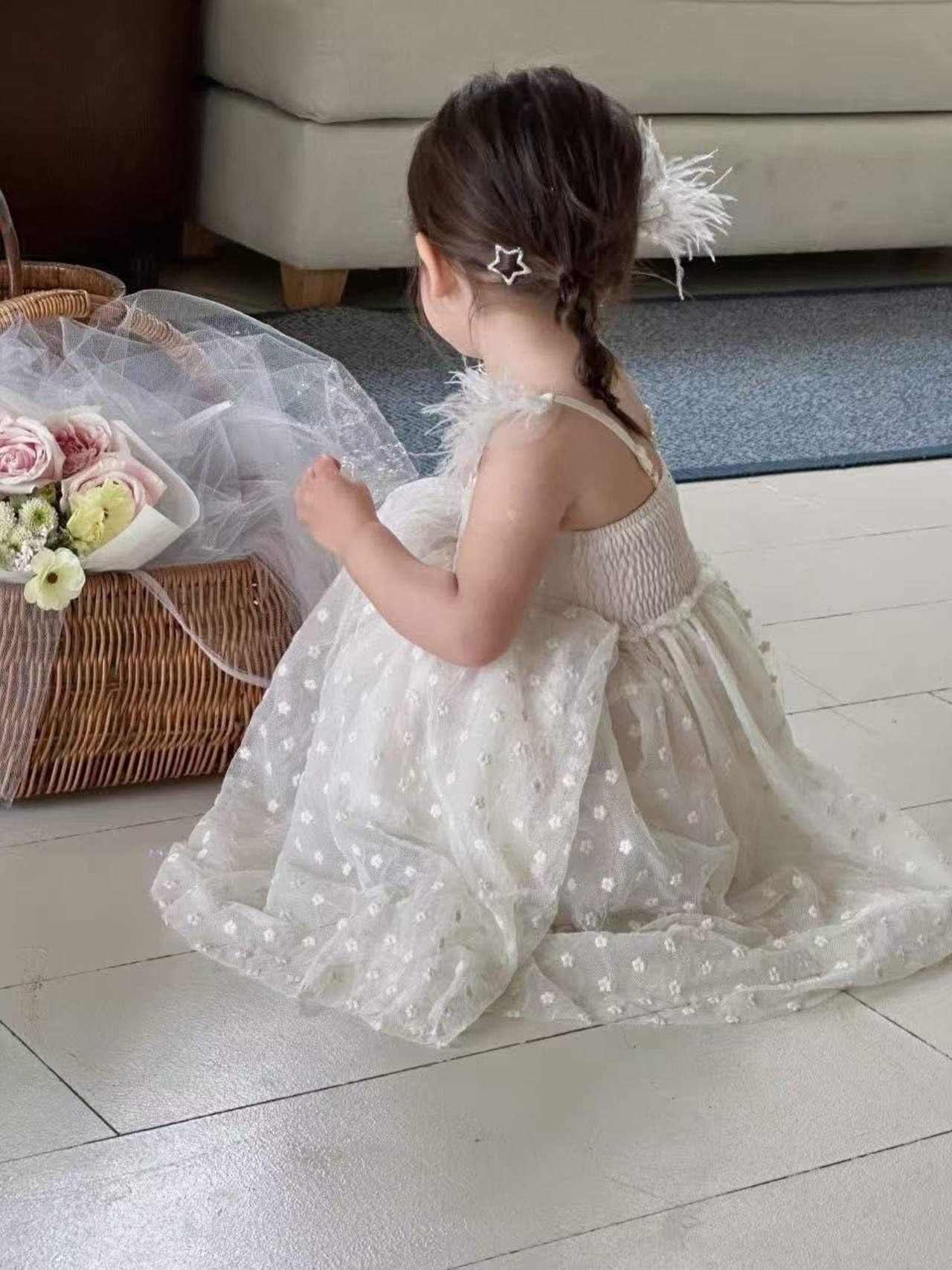 【専用】【即納 】羽のようなプリンセスワンピース オフホワイト 繊細なお花の刺繍