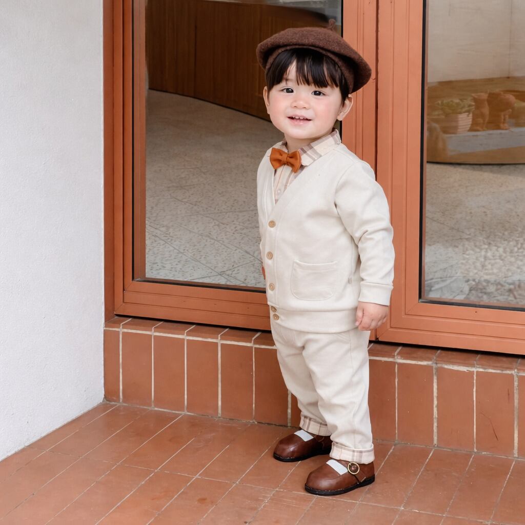 落ち着いたベージュカラーで、上品な「リトルジェントルマン」スタイル。
