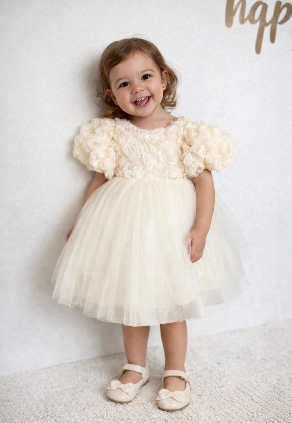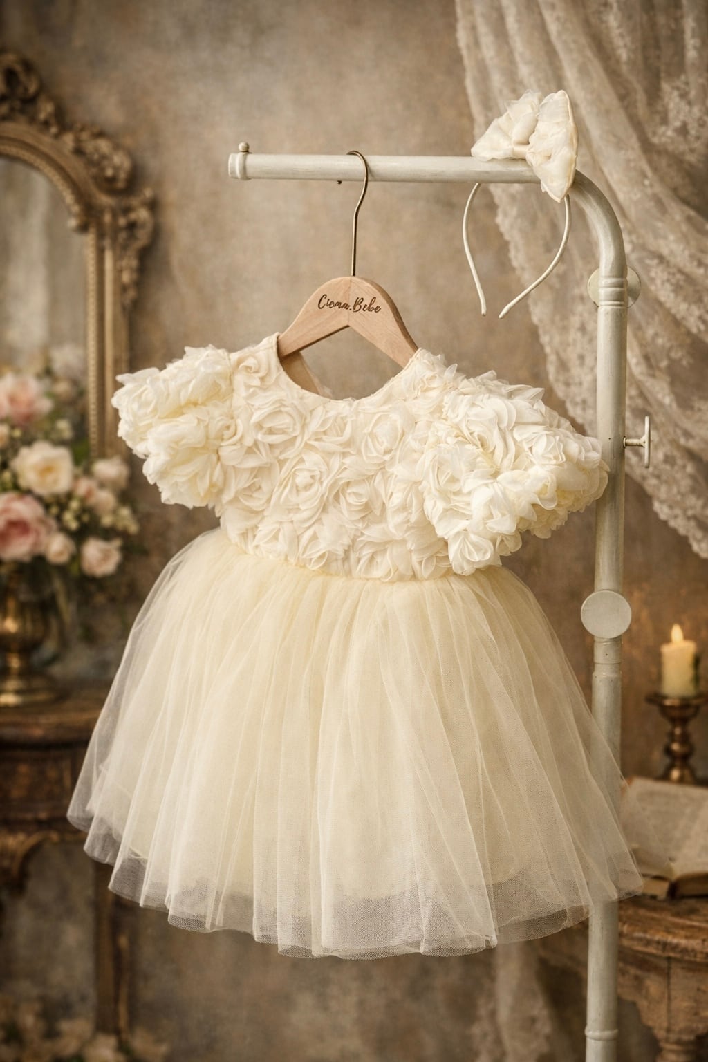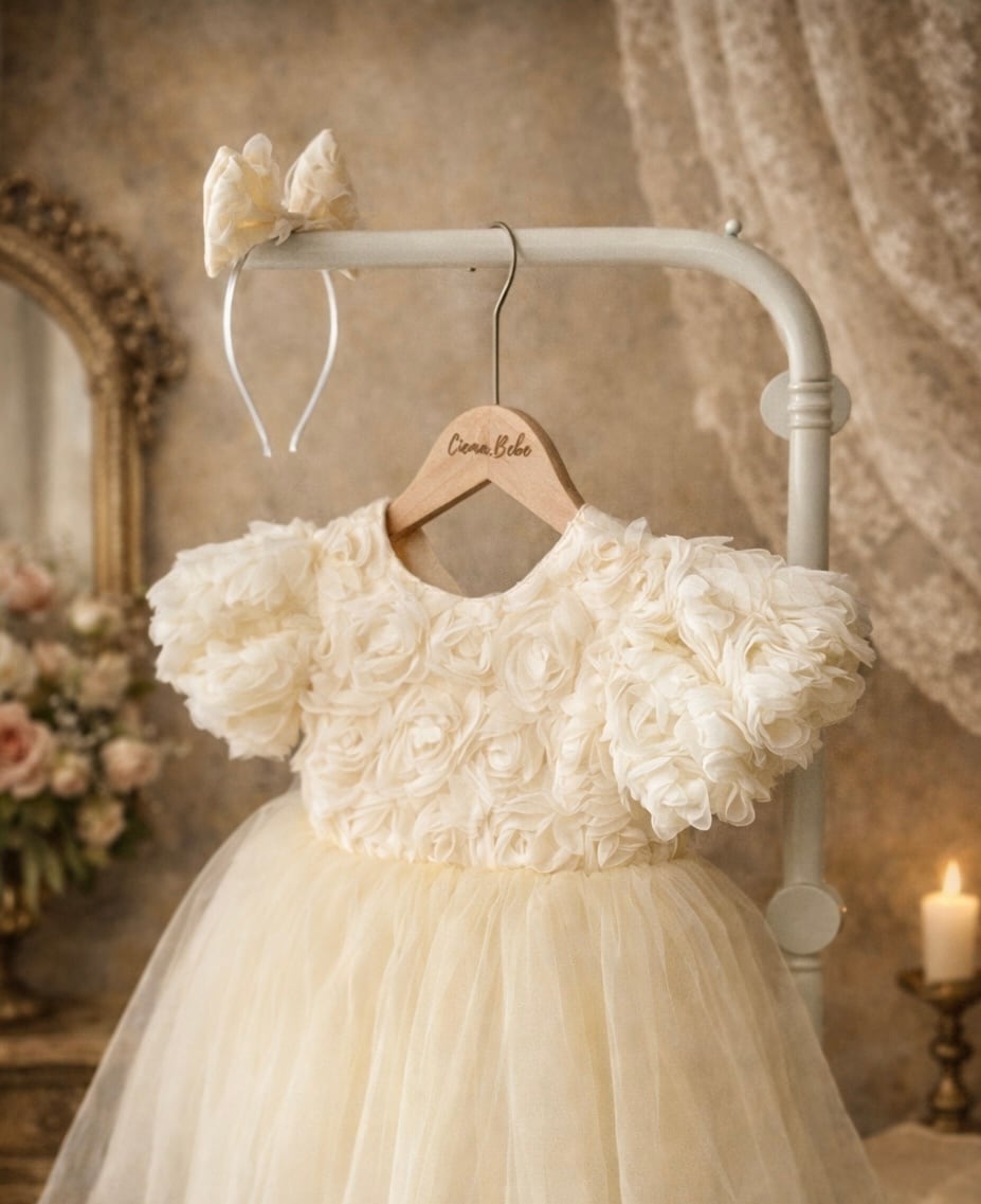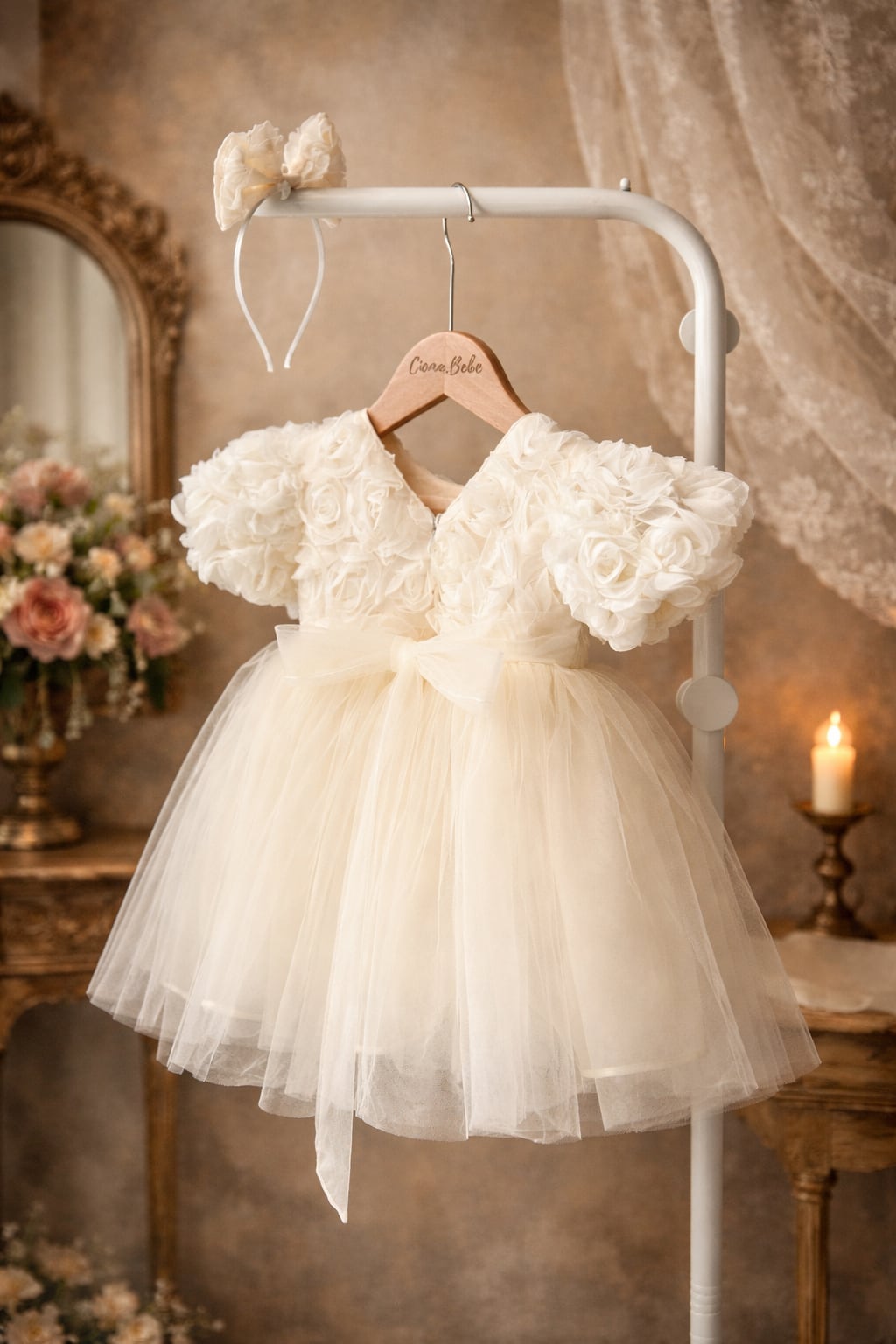 アイボリーのやさしい色合いは、バースデーフォトや記念日、結婚式、発表会など幅広いシーンにぴったり。