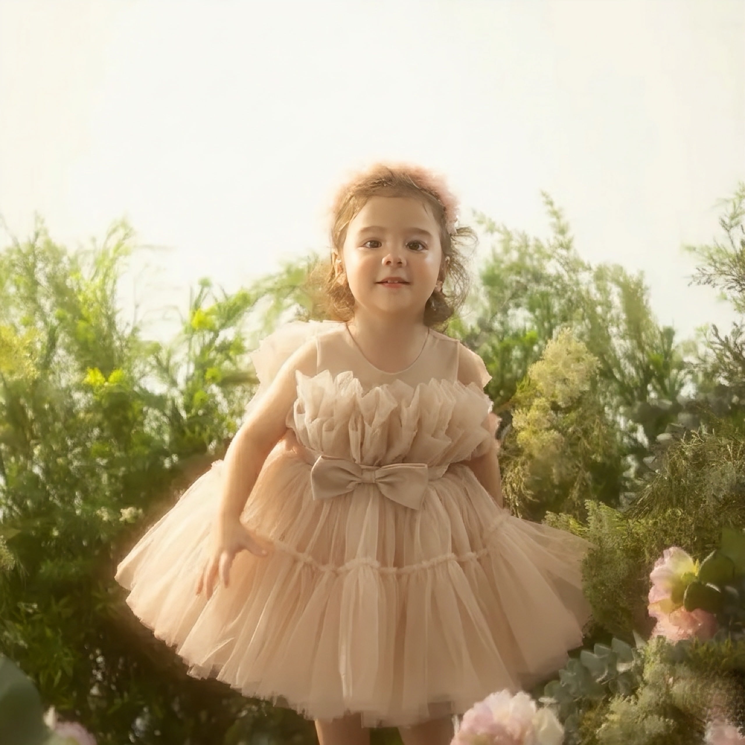 大切なお子様の特別な日にぴったりのドレス、Elenaドレスを紹介します。チュールが可愛らしいふわふわのデザインで、女の子の憧れを叶えるセレモニードレスです。 エミリードレスは、細かなディテールにもこだわりました。胸元のレースやリボンが華やかな印象を演出します。優雅なスカートのボリュームも魅力的で、お子様がまるでお姫様のように踊る姿を想像するだけで、心が躍りますね。