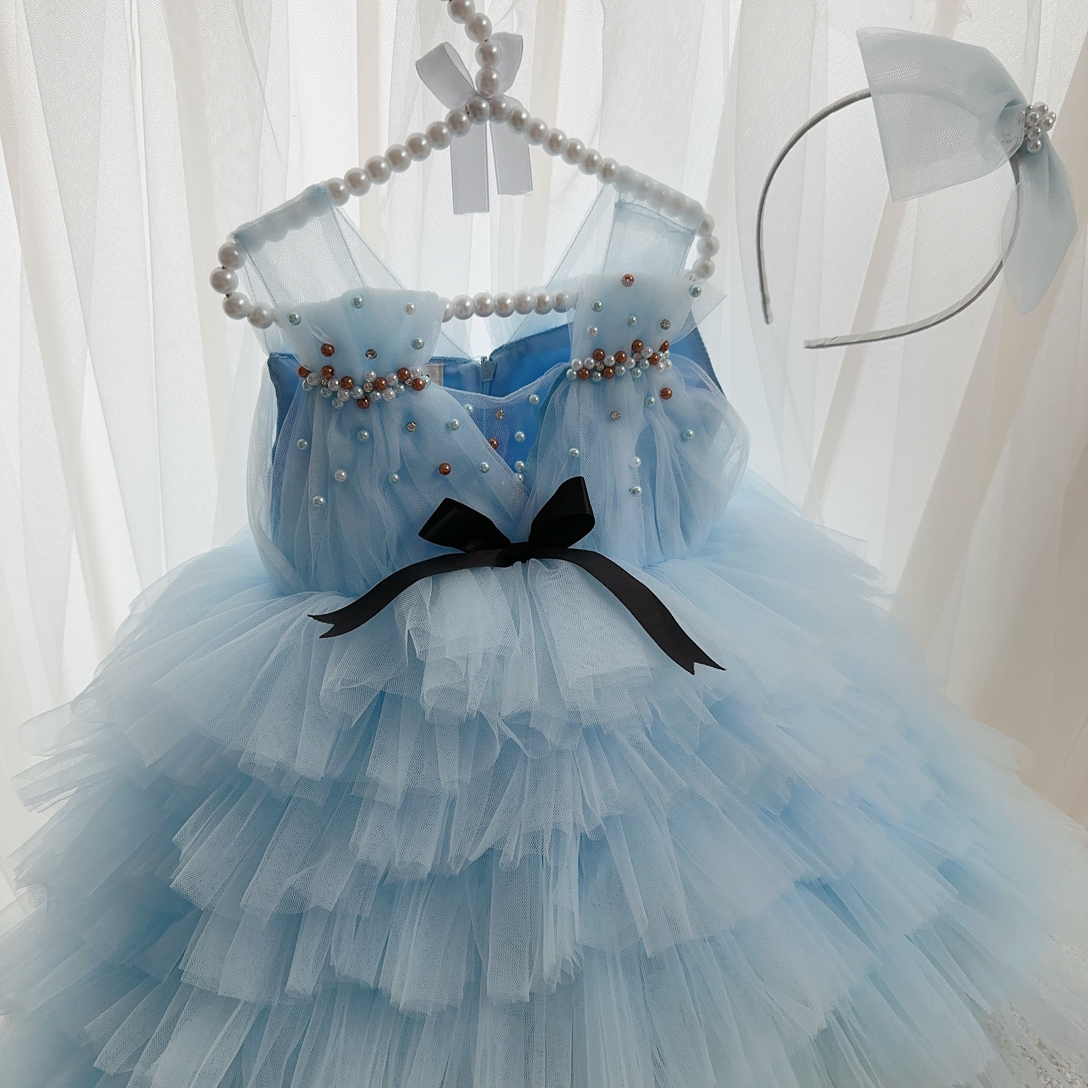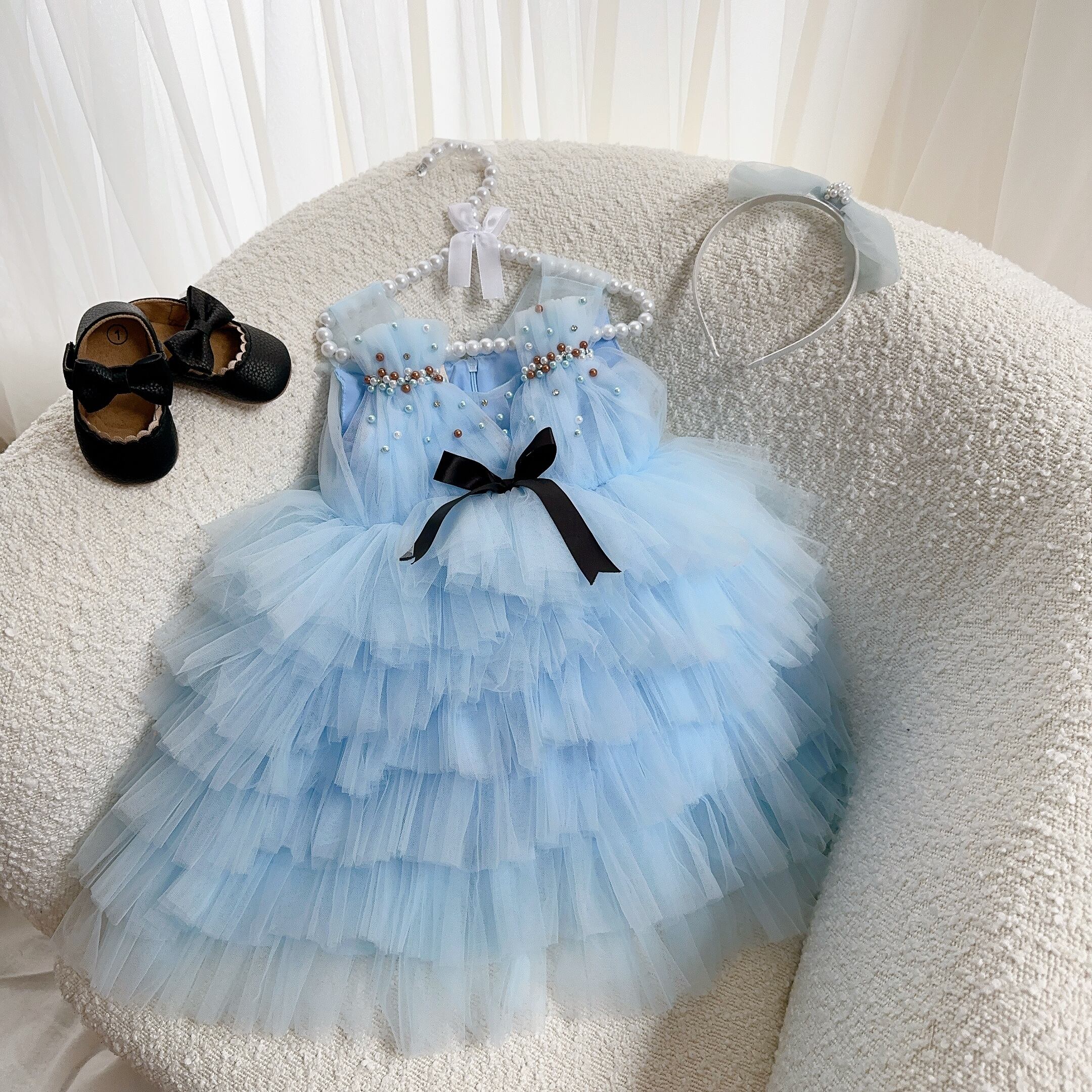 可愛らしいビーズのディテールがポイントのRuby dress。清涼感のあるブルー色ふわふわとしたチュールの素材が大切なイベントや特別な日にはもちろん、普段のお出かけやパーティーにもぴったりな一着です。