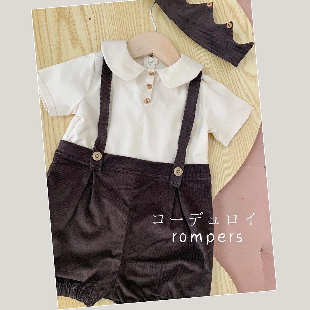 【即納】送料無料 コーデュロイ フォーマル ロンパース 3点セット 男 ベビー ロンパース 可愛い かっこいい インスタ映え 七五三 ベビー服 サスペンダー ハーフバースデー 晴れ着 お宮参り お出かけ 100日のお祝い ロンパース 男の子