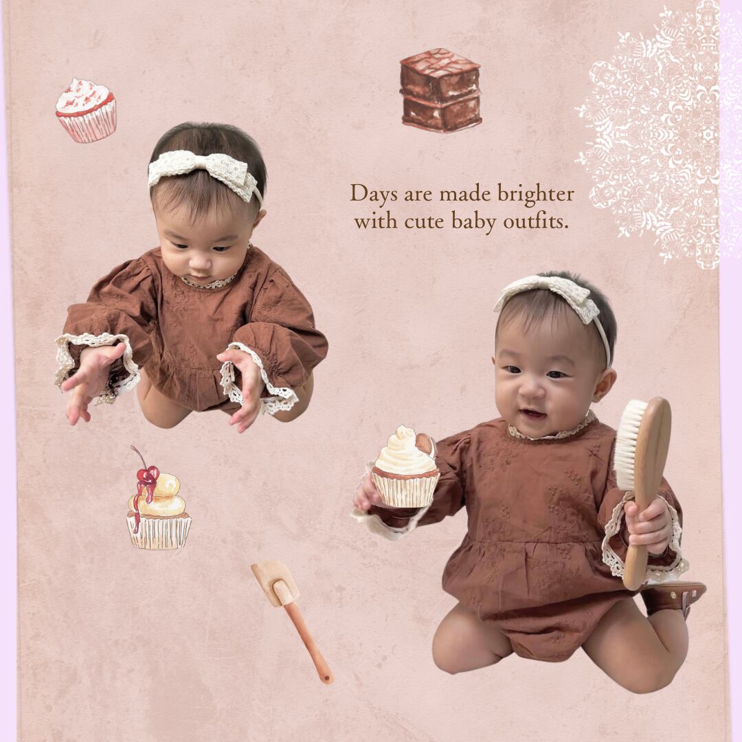 【即納】 Brownie rompers ベビーロンパース 60 70 80 3ヶ月 100日 お祝い 出産お祝い 新生児