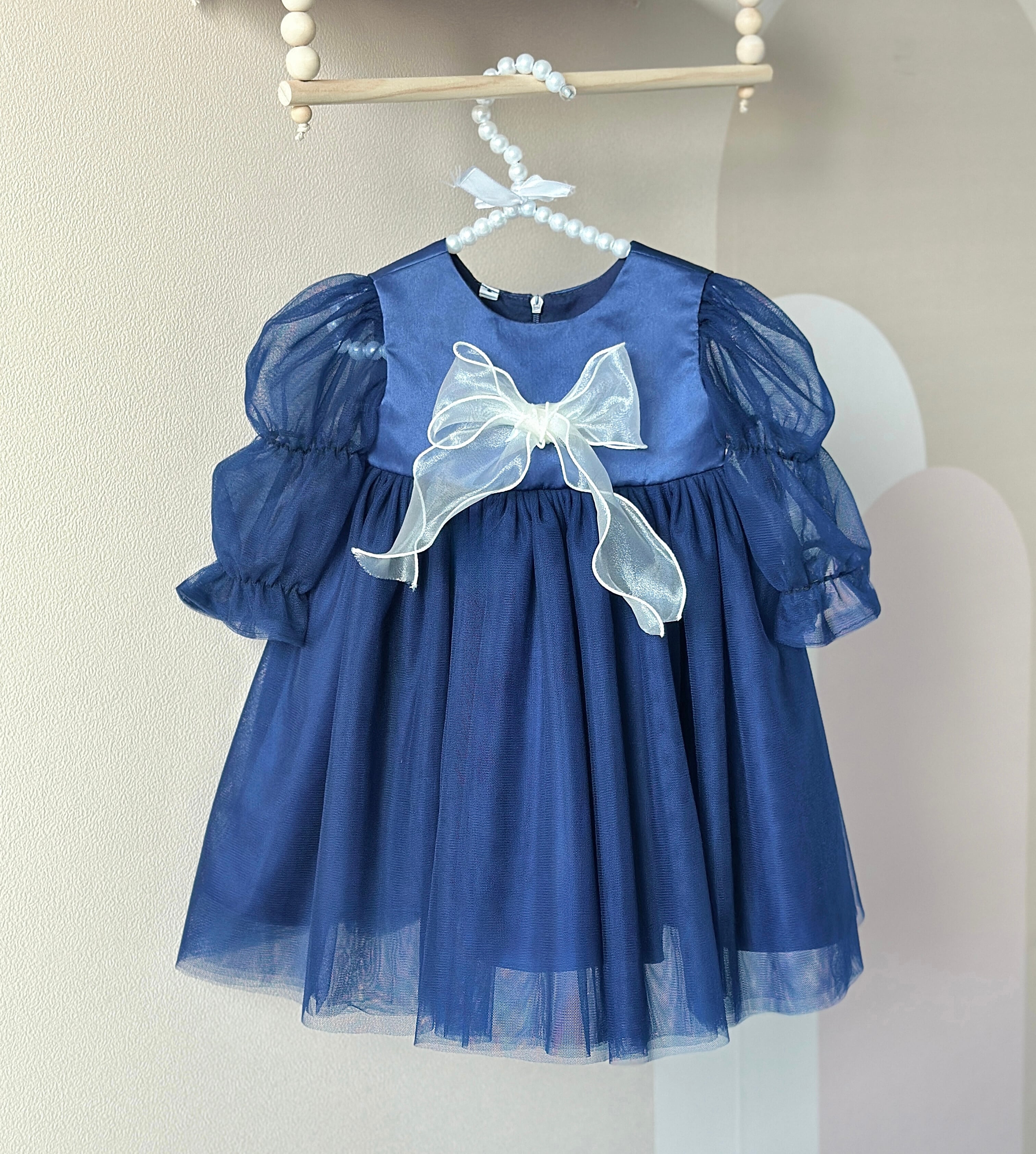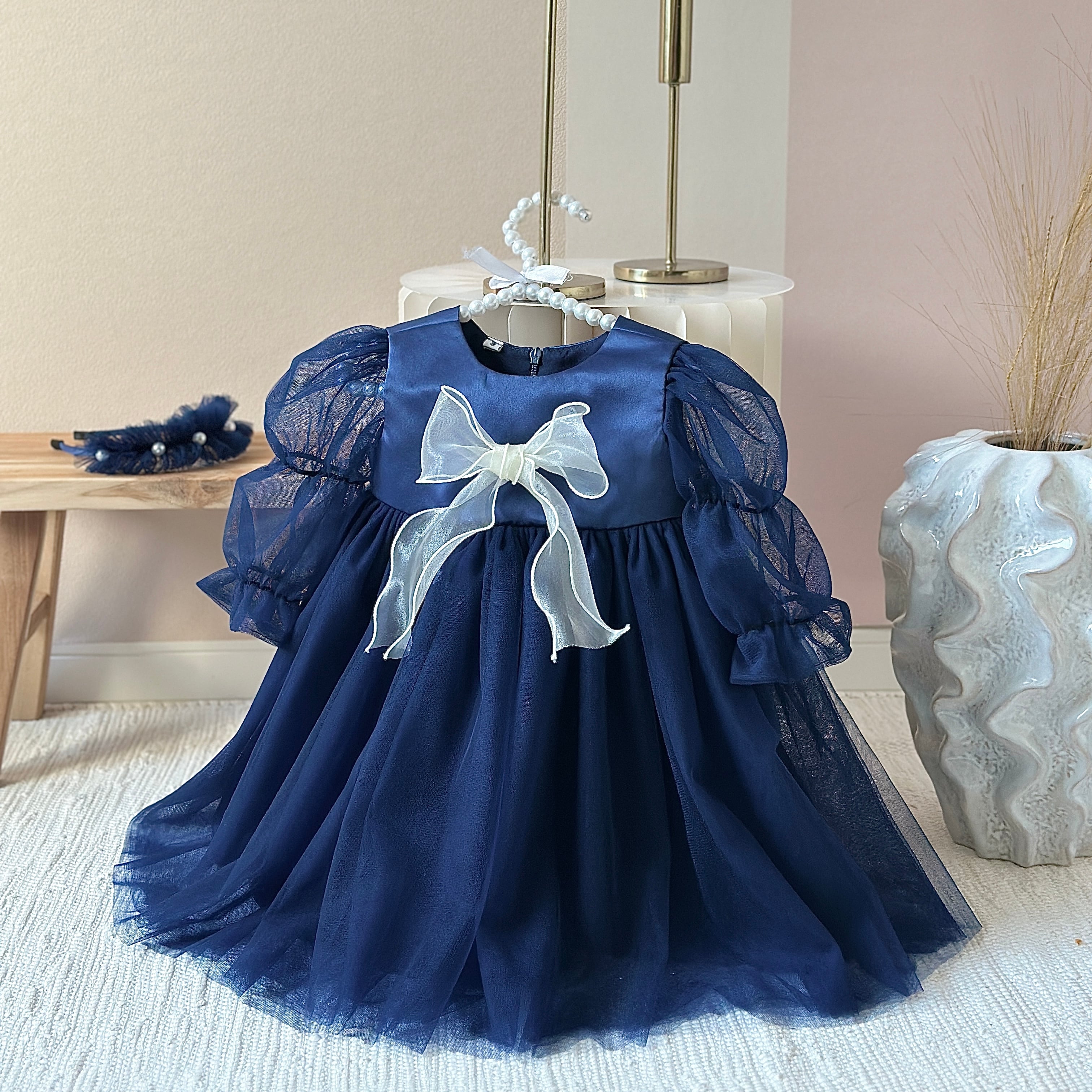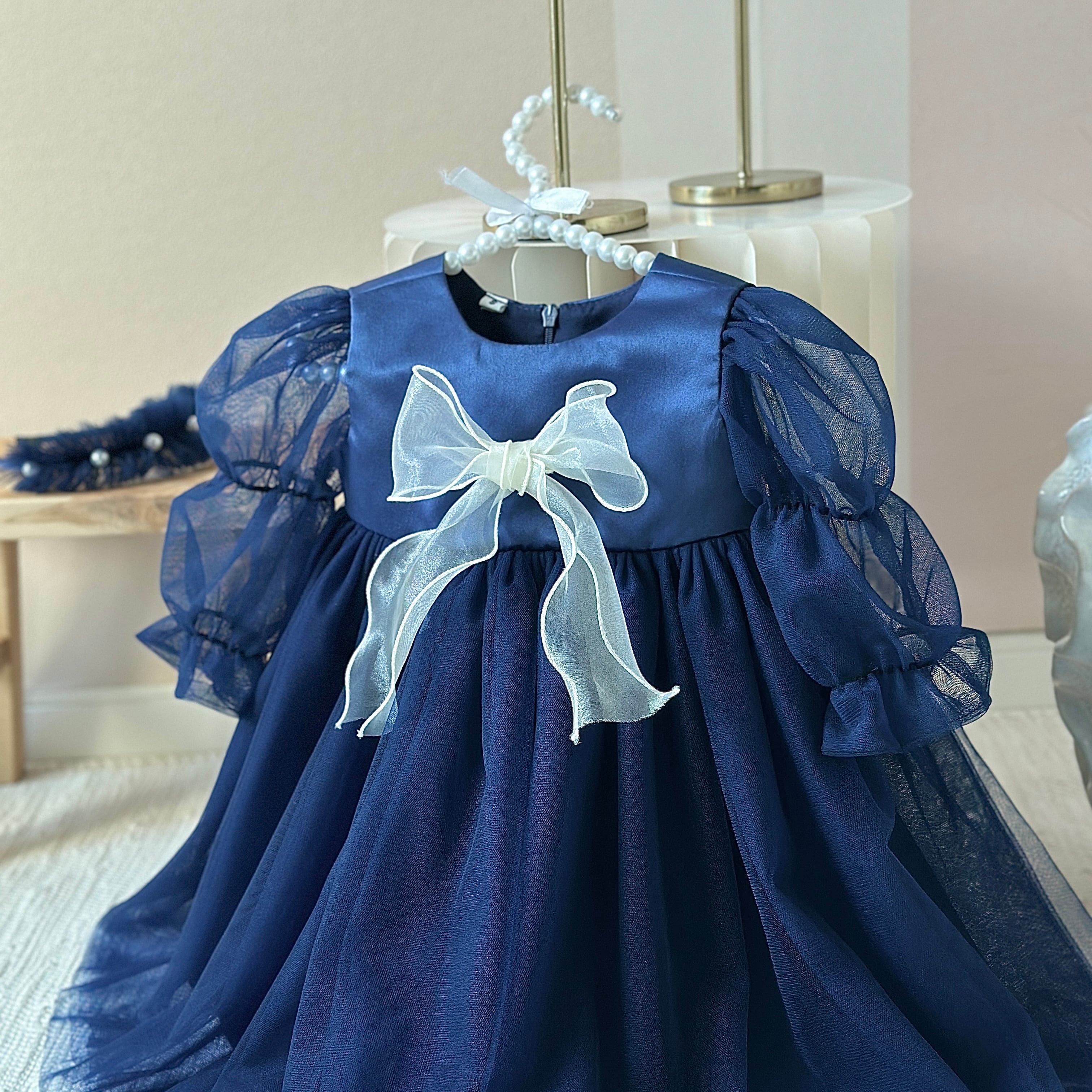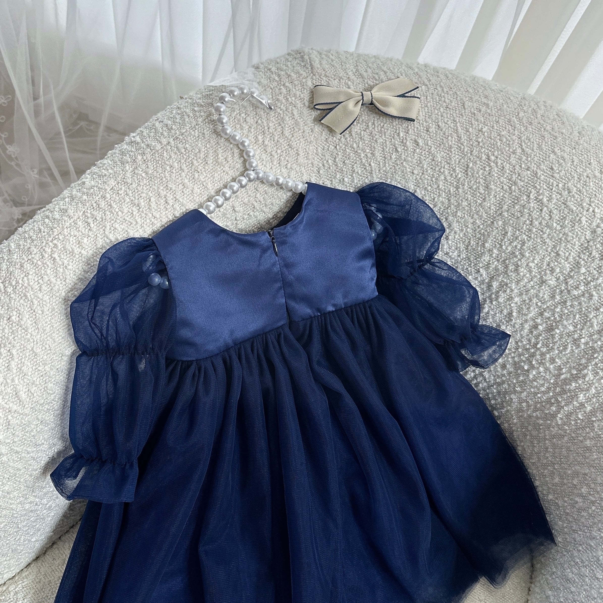 美しいネービー色と可愛らしいチュールドレスが、大切なお子様の記念日にふさわしい華やかさを演出します。