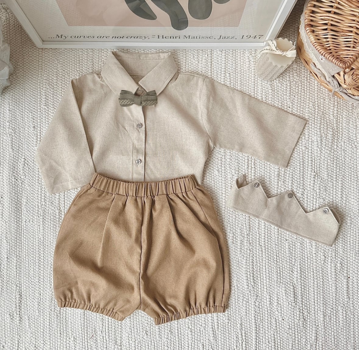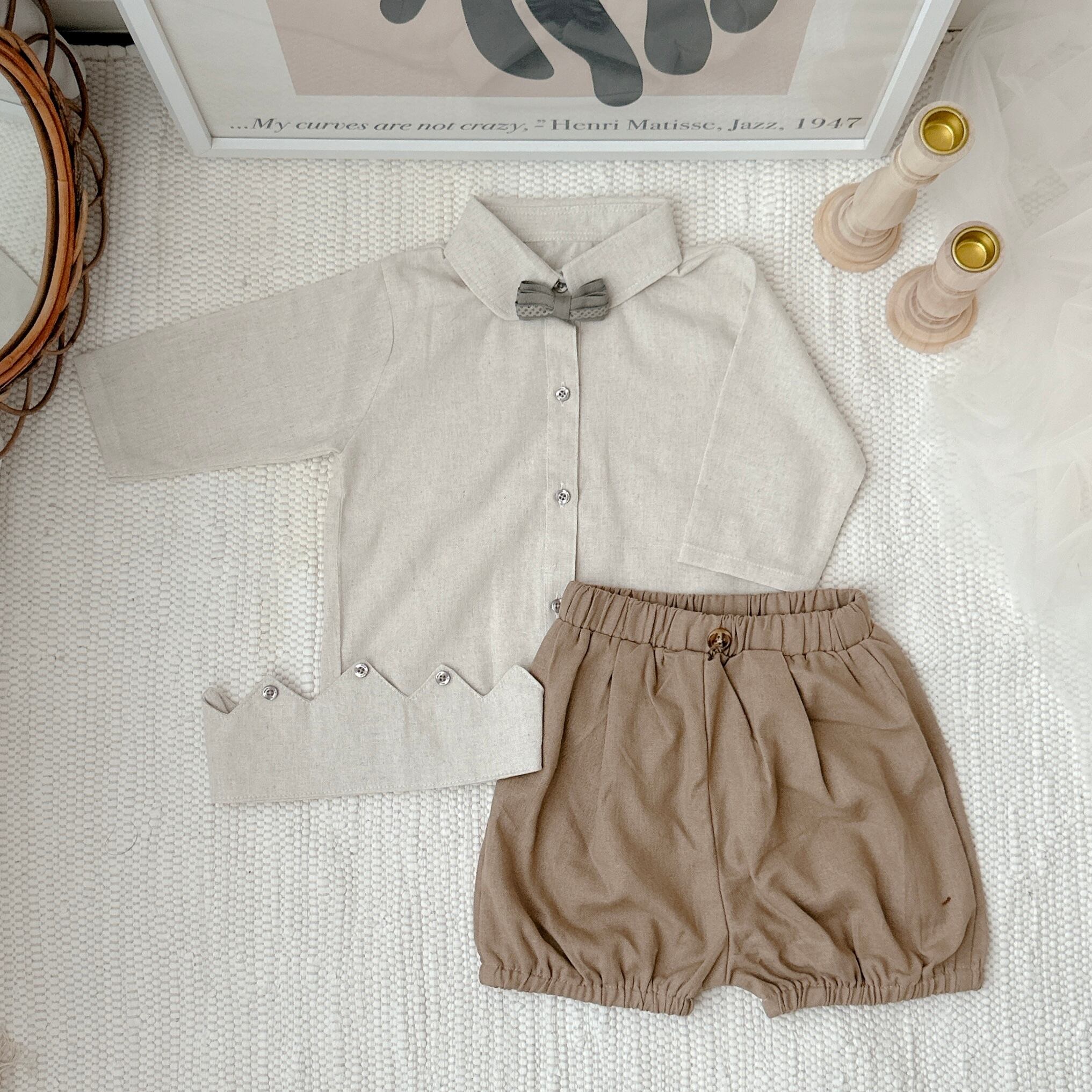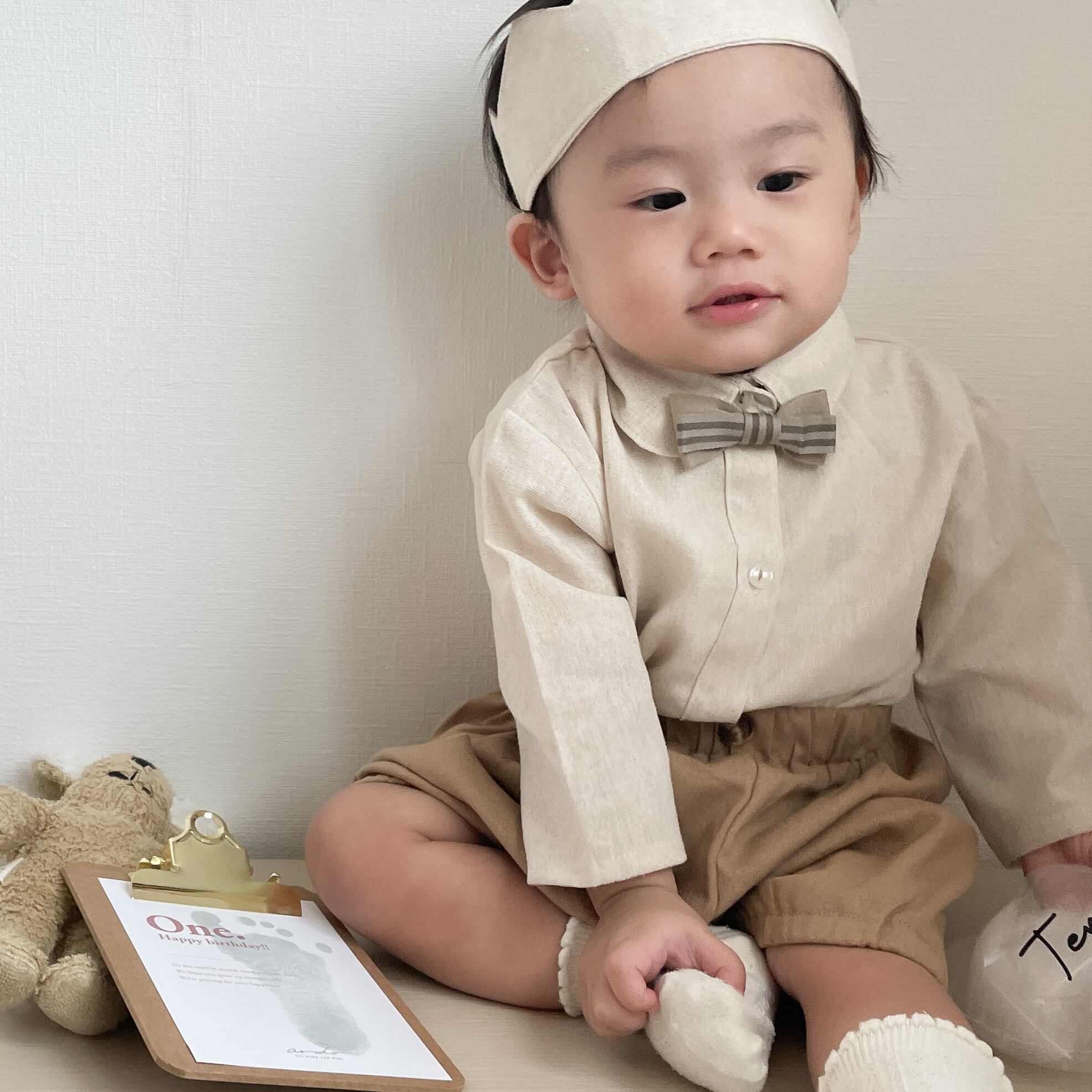 シャツ+ベージュカラーパンツ+クラウンヘアバンド+ 蝶ネクタイの4点セット