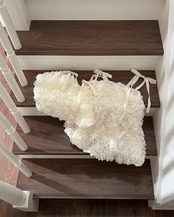 上品なアイボリーの色合いと可憐なローズモチーフが特徴です。ふんわりとしたボリュームのあるシルエットが特徴です。ニットの上に重ねて着ることもできるので、春夏から秋冬まで長いシーズンでのスタイリングに活躍します!