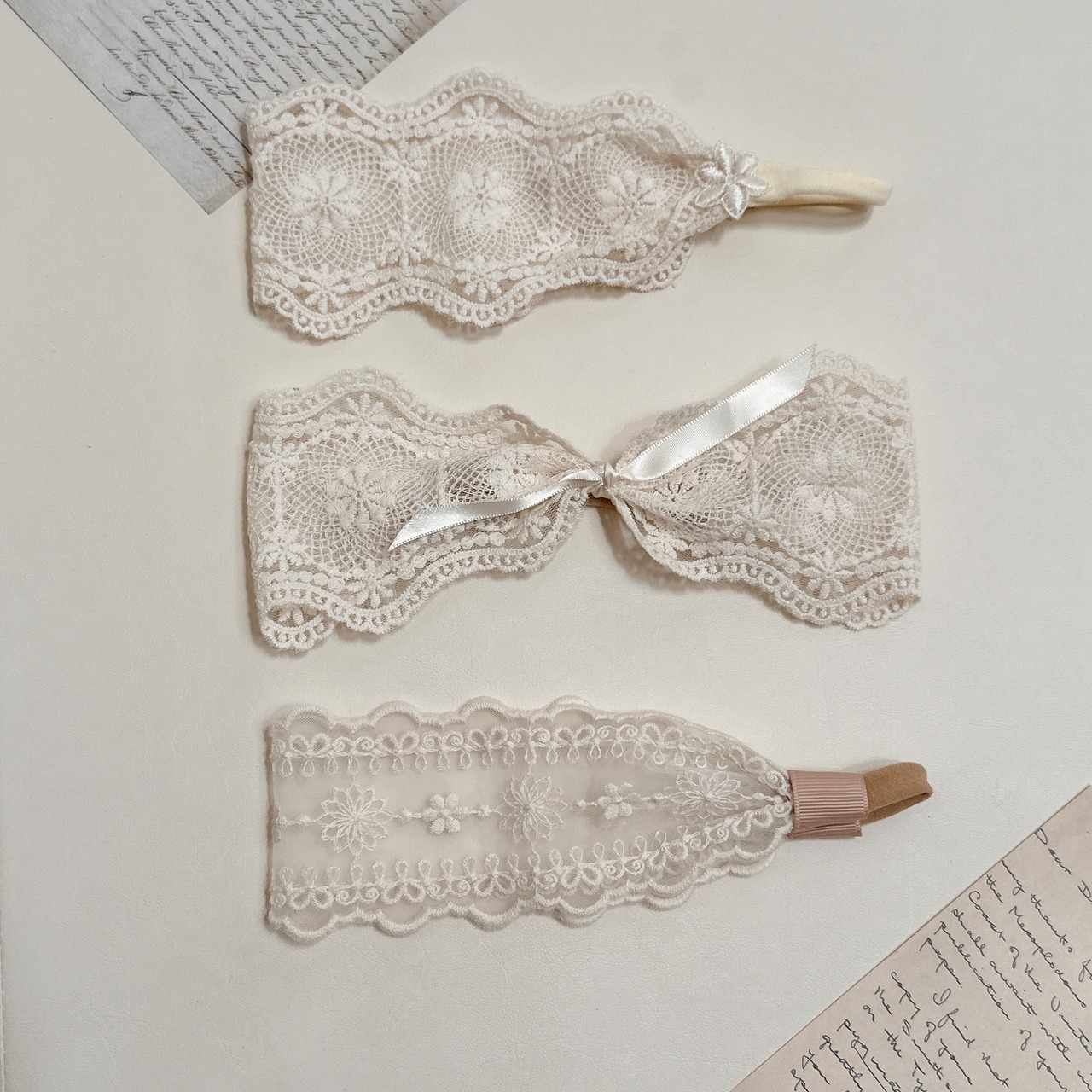 - 繊細なレースと華やかなリボンがアクセントのベビー用ヘアバンドです。