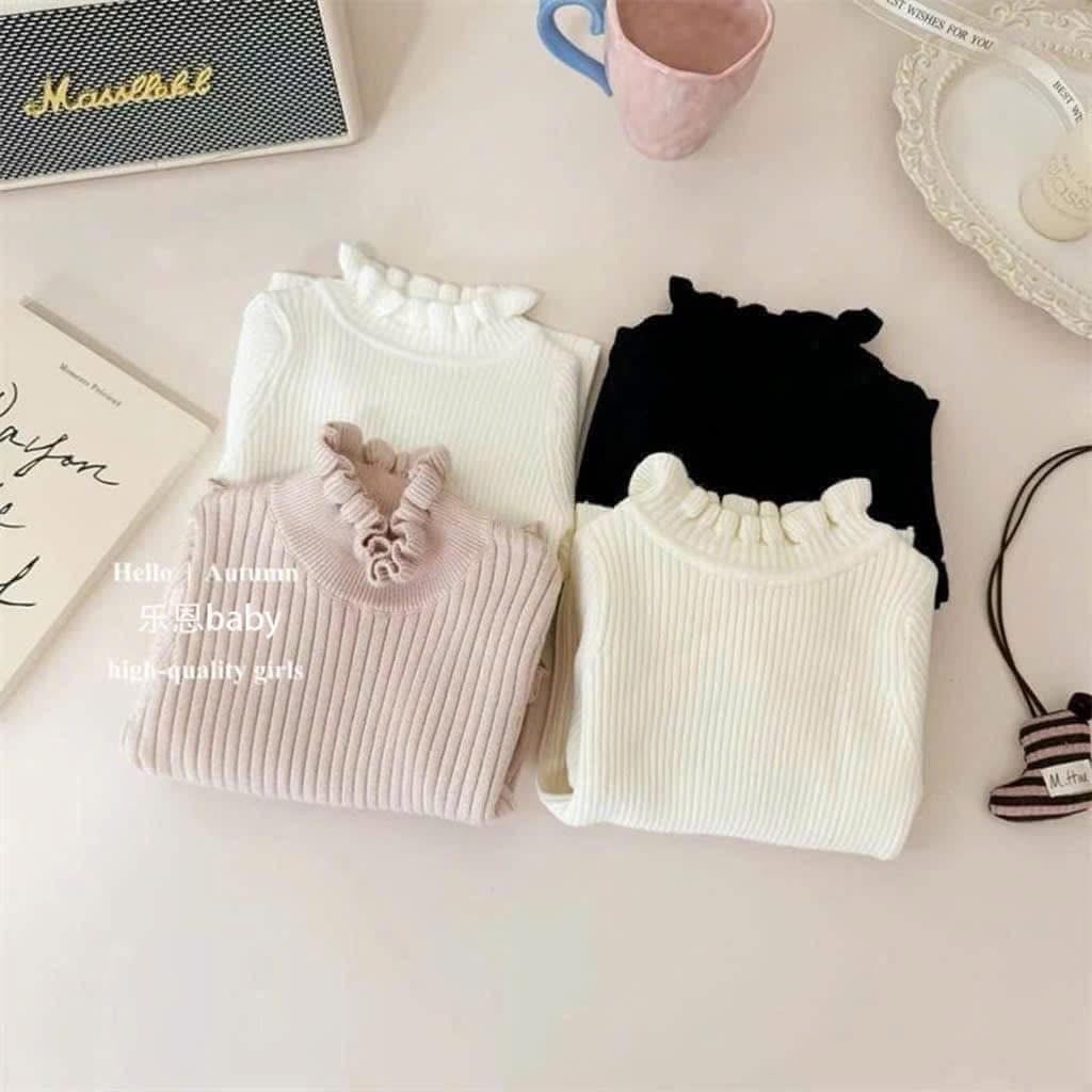 【即納】フリルハイネックリブニットトップス〔80/90/100/110/120/130〕タートル ベベ子供服 ニットトップス